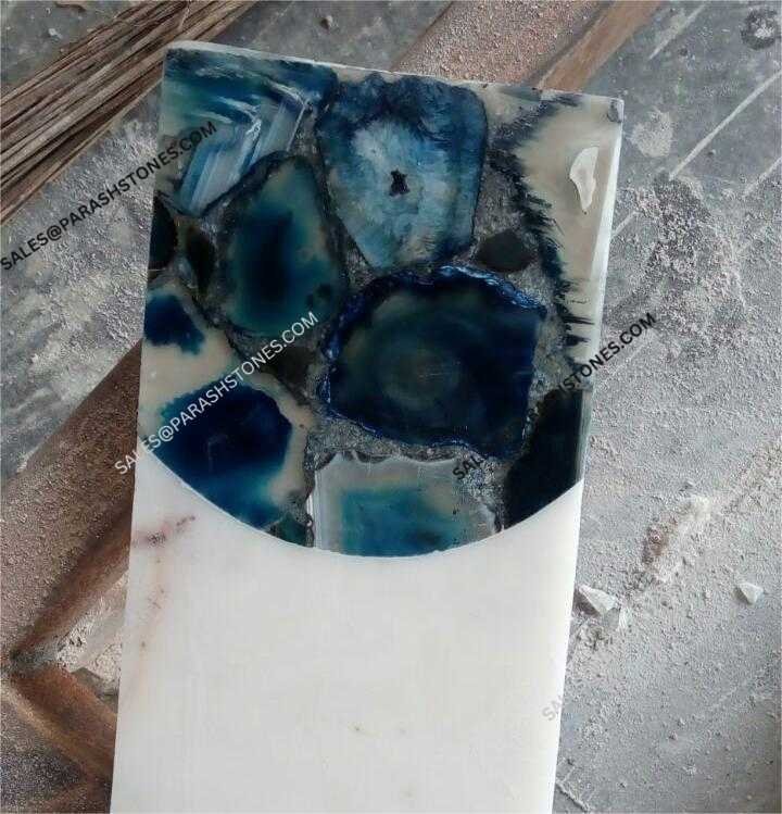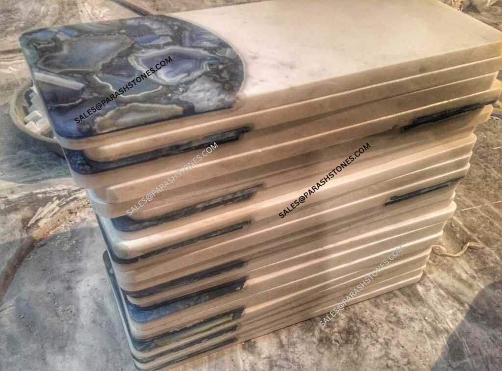 We primarily use beautiful semi-precious materials such as Agate, Quartz, and Jasper, ensuring every chopping board has a high-end, unique look.